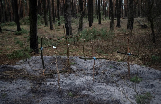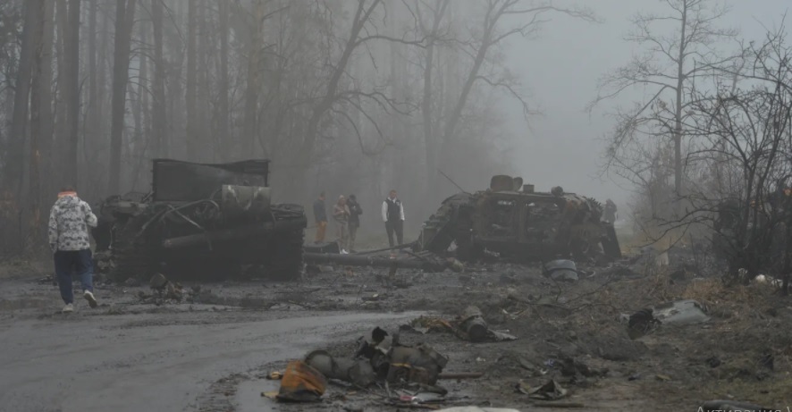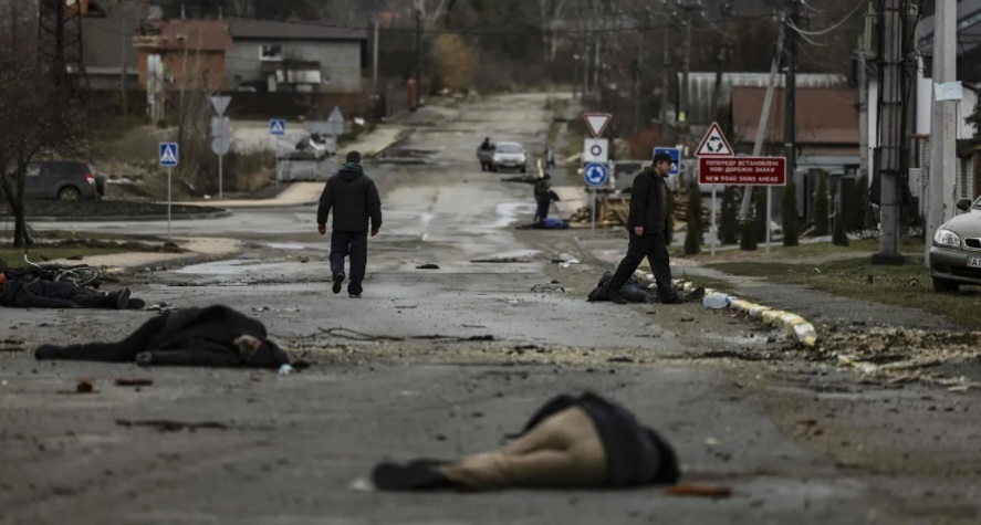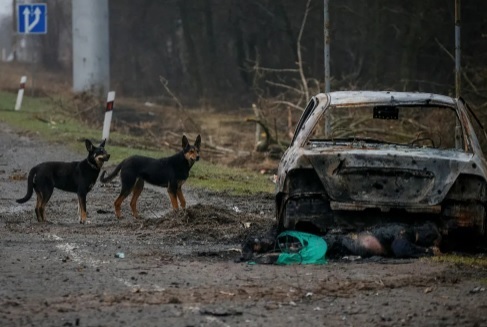 Rus qoşunları Kiyev vilayətini tərk edib. Bundan sonra bütün dünya onların geridə qoyduqlarını gördü: yandırılmış şəhərlər və qəsəbələr – yollarda uzanmış onlarla mülki şəxsin cəsədləri (qurbanların dəqiq sayı hələ müəyyən edilməyib). Buçada əlləri bağlı cəsədlər tapılıb. Şəhər meri Buçanın “cəsədlərlə dolu” olduğunu bildirib. Onun sözlərinə görə, insanlar başının arxasından güllə ilə öldürülüb. Motıjin kəndində icma rəhbəri Olqa Suxenkonun və onun qohumlarının cəsədləri kütləvi məzarlıqda tapılıb. Kiyev vilayətində magistrallardan birinin kənarında fotojurnalistlər çılpaq qadınların cəsədlərini görüblər. Meduza rus hərbçilərinin getdiyi Kiyevətrafı qəsəbələrdən – bu müharibənin ən dəhşətli kadrlarını dərc edib.