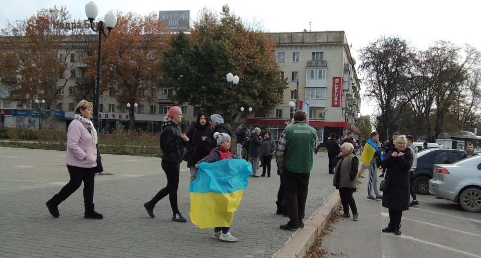 Xersonda yerli sakinlər Ukrayna bayraqları ilə mərkəzi meydana çıxdı